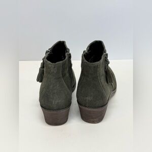 Hunter green suede Rebel double zip with tassel ankle boots from PROPET, size 8.5.
