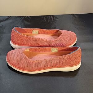PROPET ROUND TOE SLIP-ON STYLE WOMEN"S FLAT SHOE SIZE 11 COLOR ORANGE MADE WITH ALL MAN MADE MATERIALS Breathable and stretchy knitfit top