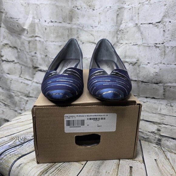PROXY Navy Silver Multi Stripe Womens Emastine Dress Wedge Shoes Size 9.5M