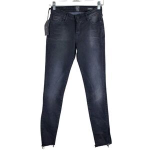 PRPS Camaro Mid Rise Skinny Jeans Raw Split Hem NWT Womens 24 Denim Stretch Dark