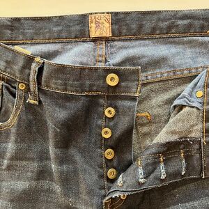 [I have a lot of PRPS jeans listed; bundle them and get a great discount!] Elevate your denim collection with the PRPS E57P50NX Distressed Blue Jeans. Crafted for those who appreciate a blend of classic style and modern detailing, these jeans feature a traditional button closure and a comfortable regular fit, perfect for any occasion. The solid light wash denim, accented with the brand's signature logo, is a testament to Prps' commitment to quality and style. With a versatile straight leg cut and a 36-inch waist paired with a 31-inch inseam, these jeans cater to a timeless aesthetic that transcends seasons. The distressed finish adds an edgy touch, while the 5-pocket design ensures functionality without sacrificing fashion. Handmade and machine washable, these PRPS jeans are a staple for any wardrobe, embodying a piece of heritage with every stitch.