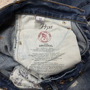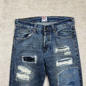 PRPS Made in Japan Distressed Medium Wash Patch Jeans Blue Size 30x31