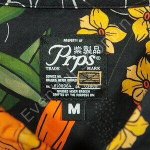PRPS Shirt Mens M Black Floral Button Down Hawaiian Short Sleeve Cotton