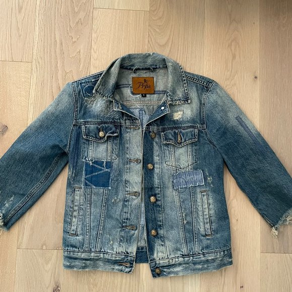 PRPS Women's Denim Destroyed Patch Jean Jacket - Size small