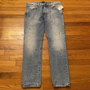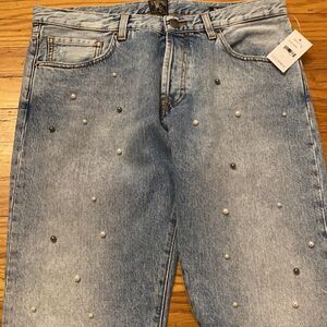 PRPS "El Camino" boyfriend jeans with pearl embellishments.