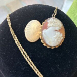 PR.ST.CO 1/20 12K GF Mother of Pearl Cameo Locket NECKLACE