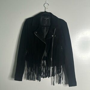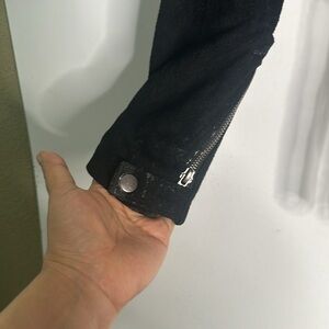 Ps Erin wassion black suede leather French moto jacket size medium good condition armpit to armpit 17 inches shoulder to hem 18 inches there's a small rip under French it's fixed