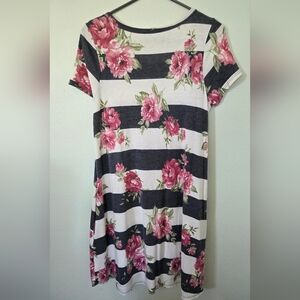 P.S. Kate Striped Floral T-shirt Dress Size Medium