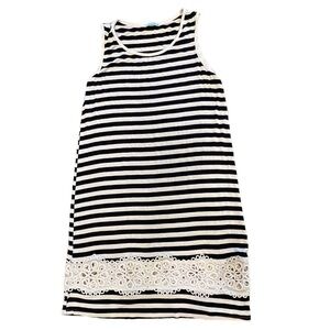 P.S. Kate Women’s Navy & White Striped Tank Dress with Lace Detail, Size Medium