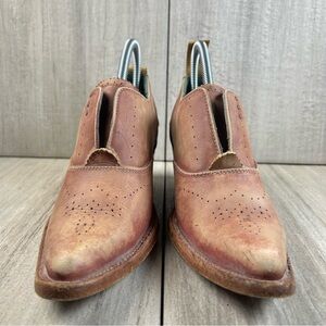 PS Kaufman Rustic Tan Leather Heeled Western Oxford Ankle Booties Women’s Size 6