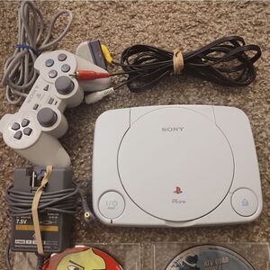 PS One Slim Console With Five Games, PRE-OWNED. In good condition, console tested and works 100 percent. Console is complete with AC adapter, AV wires, and controller. Also games included in the lot are :