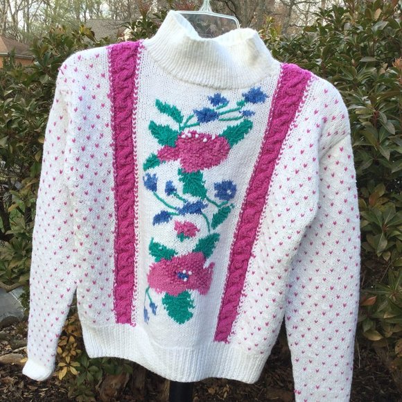 P.S. Sport Floral Cable Knit Mock Neck Sweater