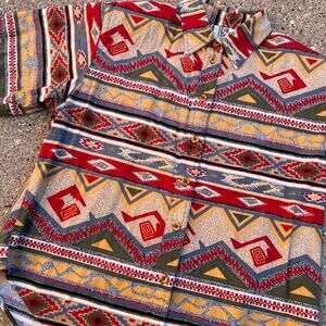 Vintage PS Sport Striped Abstract 100% Cotton Button-up Shirt Sz M