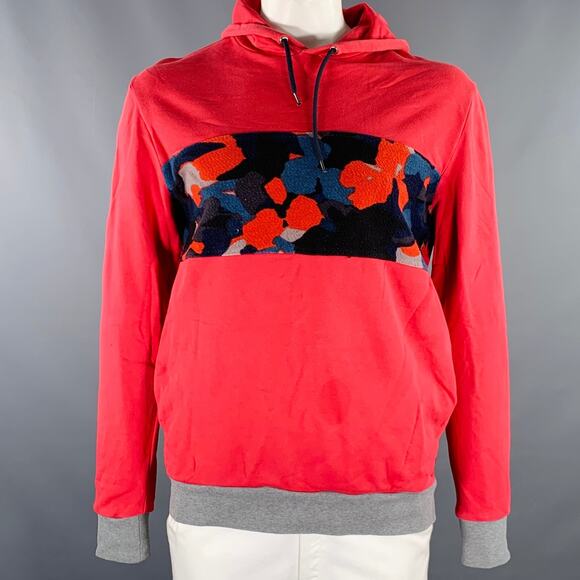 PS by PAUL SMITH Size L Red Blue Mixed Fabrics Cotton Hooded Sweatshirt