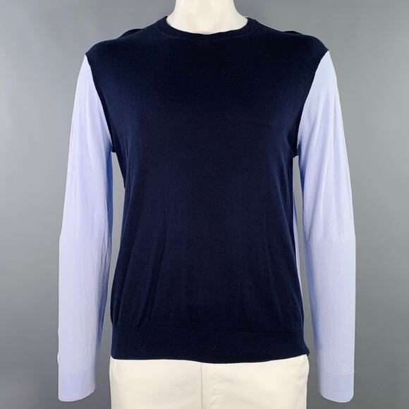 PS by PAUL SMITH Size XL Navy Light Blue Two Toned Cotton Crew Neck Pullover