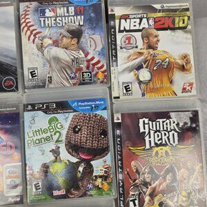 PS3 Lot of 10 PlayStation 3 Call Duty, NBA, Guitar, MLB, Uncharted 2, Speed Work