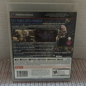PS3 Payday game featuring intense heist action. Includes masked characters and dynamic gameplay.