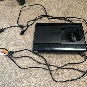 Fully functional Rare slidable top PlayStation 3, needs to be memory wiped! comes with all cords power and HDMI! And ps3 controller with charger..but controller has stick drag when looking around. The 3rd party controller isn’t PS but works better than the original controller!!