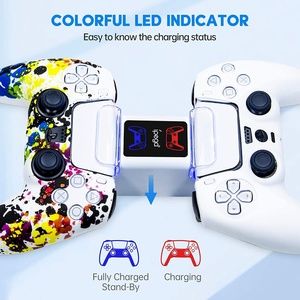 The PS5 controller charger is installed with dual colors LED Indicator, you will get the charging status clearly. Green light states the PS5 controller has been charged completed, red light states the PS5 controller is charging.