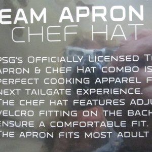PSG's Official NFL Indianapolis COLTS Team Apron & Chef Hat One Size Fits Most Adults NIP (New in Package). Blue Apron w\ White Colts logo. Apron is cloth material.