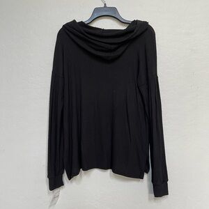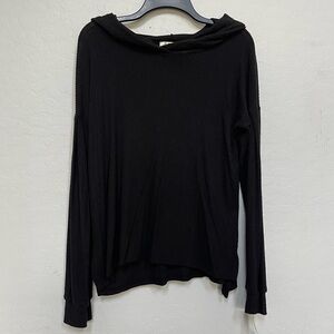 PST Los Angeles By Project Social T Black Ribbed Long Sleeve Hoodie Top. NWT