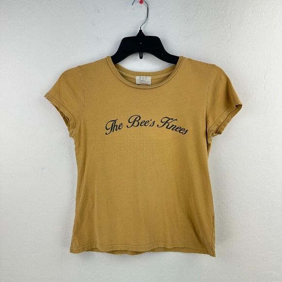 PST Tshirt Women XS Yellow Black Cotton The Bees Knees Short Sleeve Pullover Tee