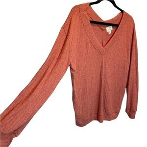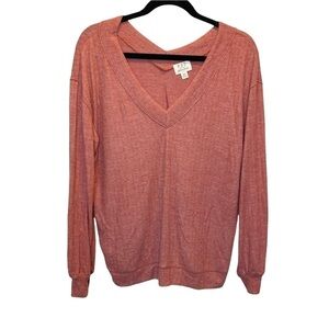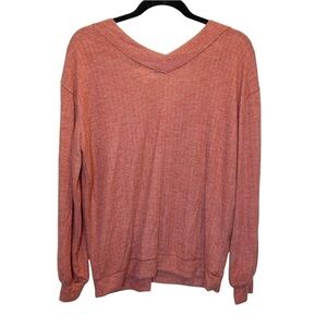 PST by Project Social T V-Neck Knit Sweater Ribbed Heather Chili Large New NWT