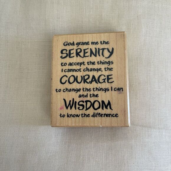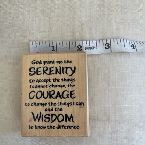 The PSX F-2411 God Grant Me the Serenity Courage Wisdom rubber stamp is a mounted stamp produced by PSX Designs in 1999. This stamp features a religious theme with the phrase "God Grant Me the Serenity Courage Wisdom," making it a unique and meaningful addition to any crafting or stamping project. Made of durable rubber material, this stamp is designed to create clear and detailed impressions on various surfaces.
