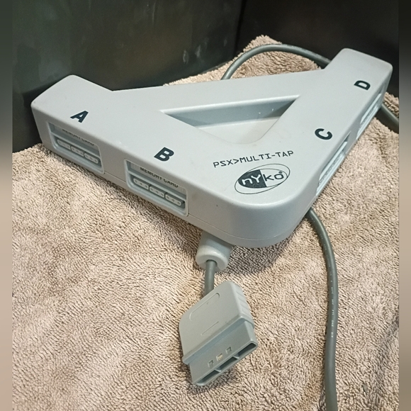Enhance your gaming experience with the PSX Multi-Tap Controller Adapter. Connect multiple controllers for multiplayer fun. Sleek gray design complements your console setup.