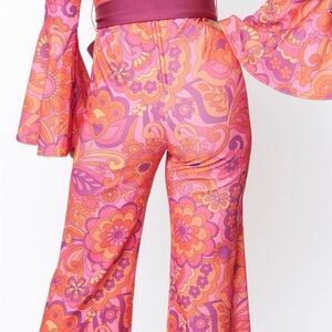 PSYCHEDELIC JUMPSUIT 70’s Inspired Long sleeves,bell bottoms pink floral print.