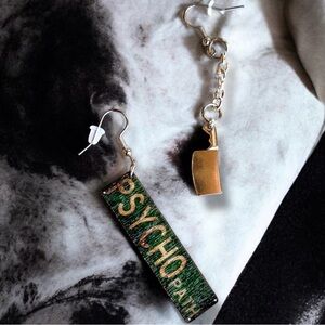 PSYCHO PATH Earrings with cleaver charm Fun Halloween Goth True Crime lover