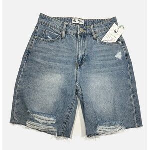 PTCL Ethical Clothing Distressed Bermuda Shorts in Indigo Blue Womens size 28