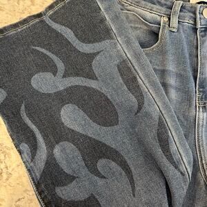 PTCL Ethikal Brand flame jeans- size 26- wide leg baggy fire print