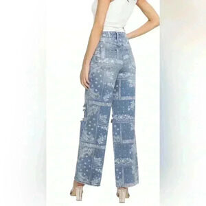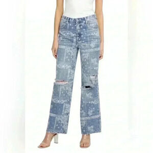 PTCL Hazel High Rise Wide Leg Jeans Bandana Patch Print Size 28 NWT