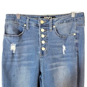 PTCL Skinny Button Fly Fit Ripped Tear Distressed Jeans