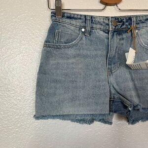 New with tag PTCL Womens Light Wash Denim Mid Rise Cut Off Fray Hem Jean Shorts 24