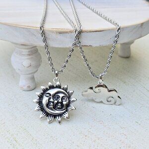 PTLHZ ✦ Sun & Cloud Charms Necklace Set ✦ Silver Rope Chains Celestial NWT