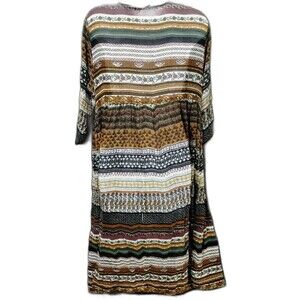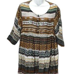 PTNY Midi Dress Size M Gauzy 3/4 Sleeve Brown Green Lightweight Eart tones fairy