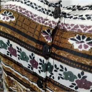 PTNY Midi Dress Women's M Rayon Gauzy 3/4 Sleeve Brown Green Lightweight Flowey