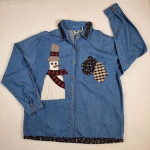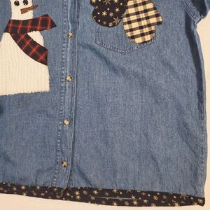 PTNY Vintage Denim Christmas Snowman Shirt Size Medium