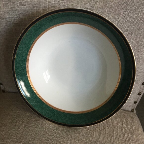 PTS International FIne Porcelain Fifth Ave Emerald serving bowl - white with green and gold. Excellent condition