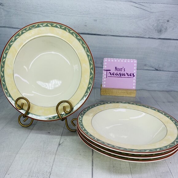 PTS international Interiors PROVENCE Fruit Leave Porcelain Rim Soup Bowl Set 4