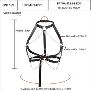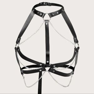 Black PU Leather Chain Decor Body Chest Choker Harness Costume Accessory