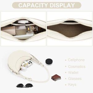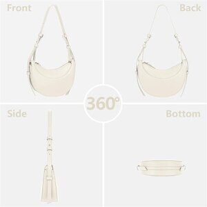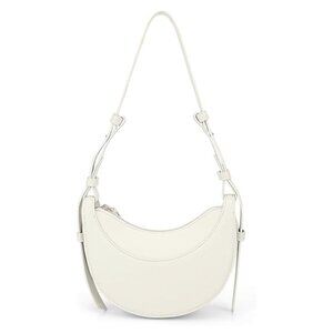 PU Leather Crescent Saddle Bag Shoulder or Crossbody Purse in Ivory