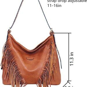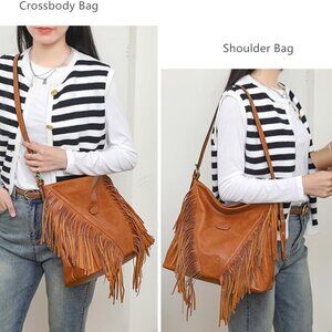 PU Leather Hobo Bag Large Fringe Studded Crossbody Women’s Handbag