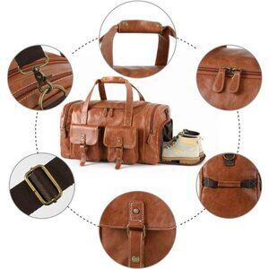 PU Leather Travel Duffel Bag with Shoe Pouch Large Carry on Bag Waterproof