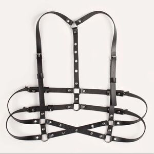 PU Leather Waist Studded Suspenders Body Harness Strap Belt