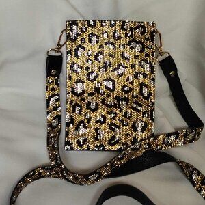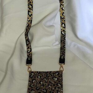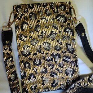 PU leather leopard print, sparkle phone case/sleeve with 50" strap - NWOT