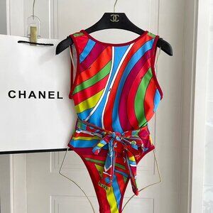 New PUCCI trendy swimwear set😍🥰 Suitable for various scenarios such as swimming in the sea, at the swimming pool, in the hot spring, at the water park, and for rafting.?? The inner layer can also be worn. The one-piece design conceals the body and makes it look taller. Even if there is a little fat on the abdomen, it won't affect your beauty. The back design exposes the beautiful back.