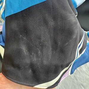 Stunning silk PUCCI gown. Mermaid style with train. Long sleeve with open back. Size Euro 38/US 2-4. Please note, there are various stains throughout the dress. Stains are mainly at the bottom but there are some small spots in other areas. SEE PHOTOS. Your dry cleaner should be able to remove all the stains.
